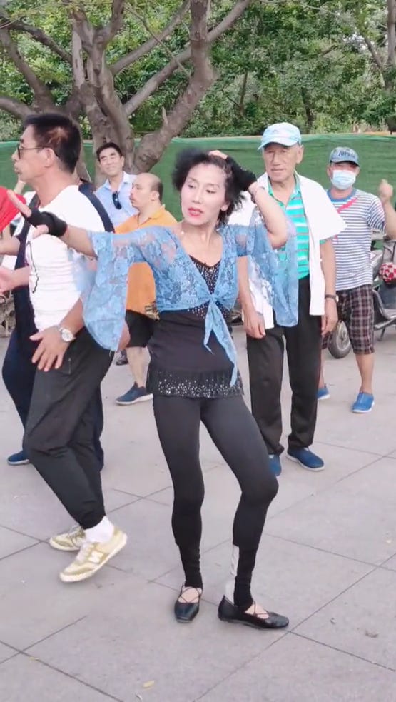 瀋陽市の「労働公園」で華麗に踊る女性。ぼんやり見ればただの面白動画だが、「なぜ中国人は公園で堂々と踊れるのか?」という難問に繋がる、実は意味深長な動画でもある(中国版TikTok・抖音の動画リンク)
