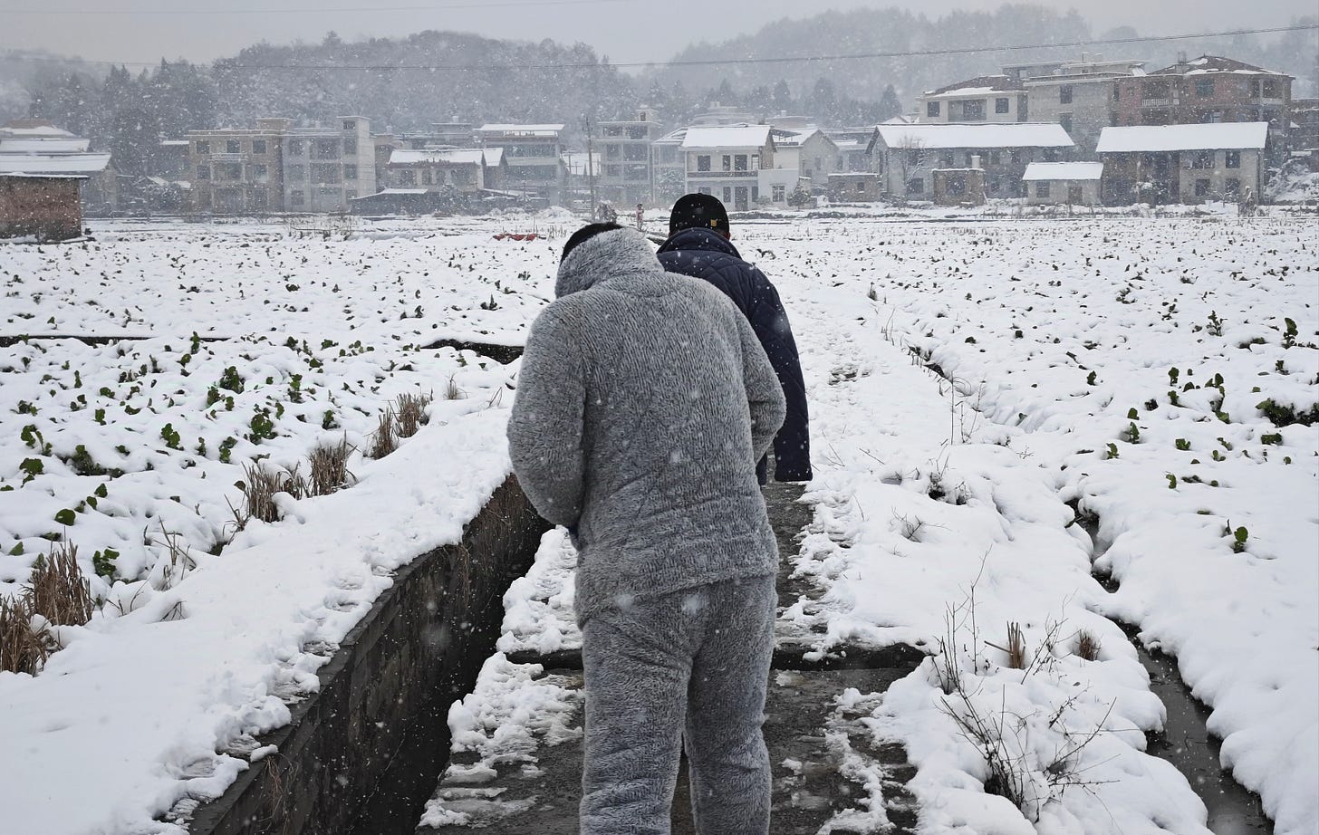 写真上:古物商の案内のもと張五郎芸人を訪ねに行く道中。古物商が着ているモコモコした服はこの地域でポピュラーな外出可能の万能パジャマ 写真下:実際に会うことができた張五郎芸人 photographs by Toru Otani