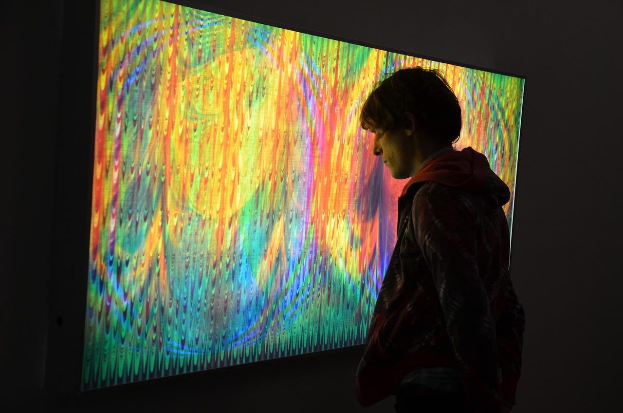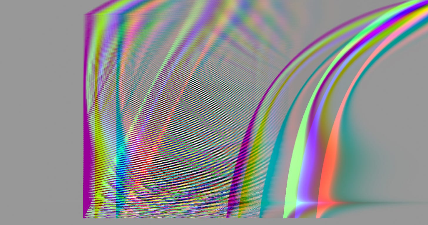 ダニエル・テムキン氏のグリッチアート作品 上:Glitchometry Circles # 9 72" x 36" digital c-print on Duratrans 2013 下:Glitchometry #17 digital c-print on Duratrans 2011 photographs courtery of Daniel Temkin
