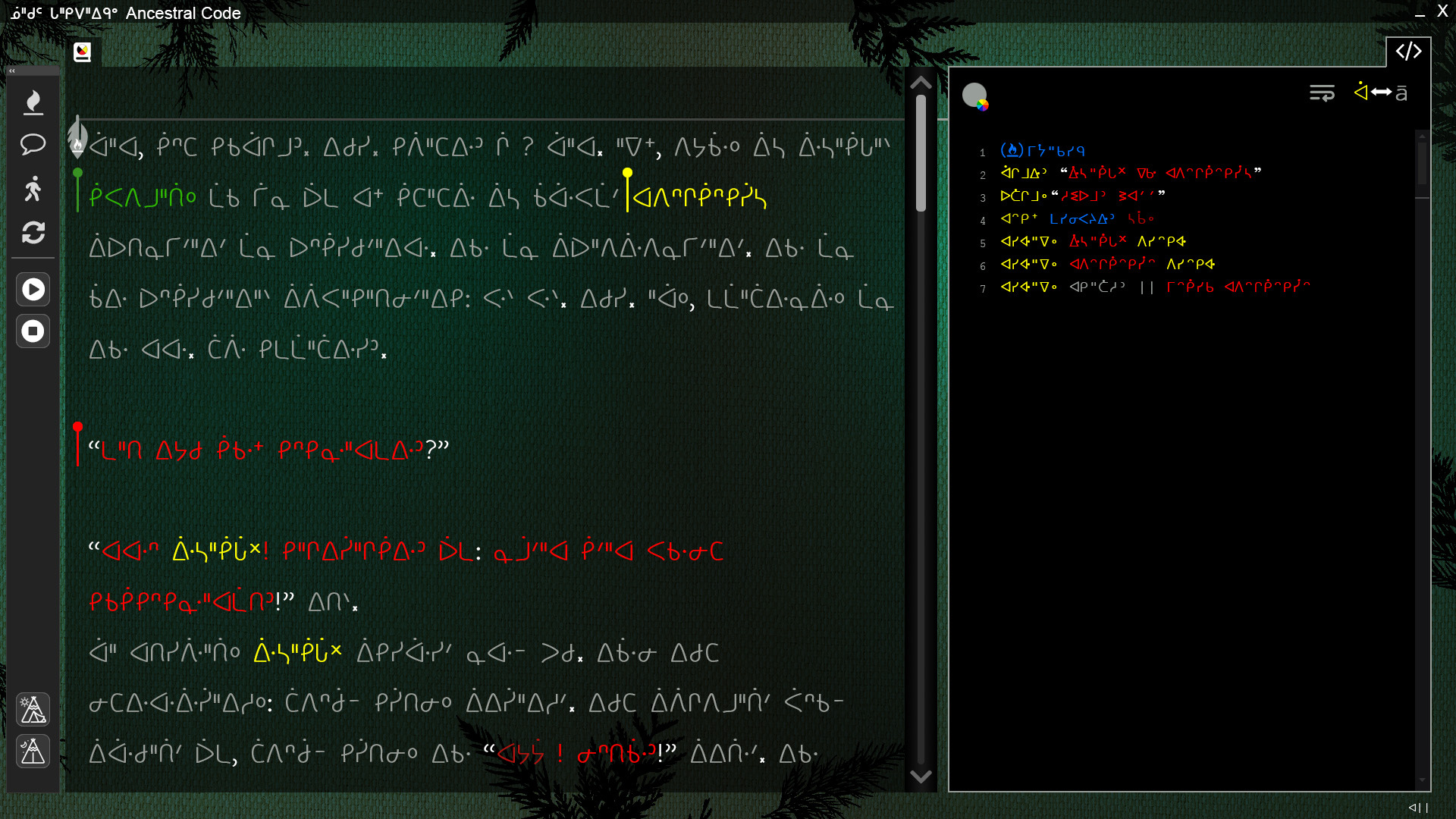 「Cree#」という言語は、カナダ先住民クリー族の言語で書かれたものです。物語形式でプログラムを記述し、実行ごとに異なる結果を生むことで、語られるたびに変化する先住民の伝統を再現しています。また条件に応じてプログラムの流れを変更する条件分岐「if…then」文を、「川」を意味する「sîpiy」という単語で表現し、流れる川を生命の象徴とする文化的メタファーを活用しています。こうして、クリー族の文化的理解をプログラミング言語そのものに組み込んでいるのです。