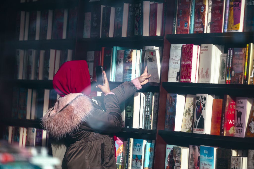 「バーンズ・アンド・ノーブル」で本を撮影する来店客 photograph by Angus Mordant/Bloomberg via Getty Images