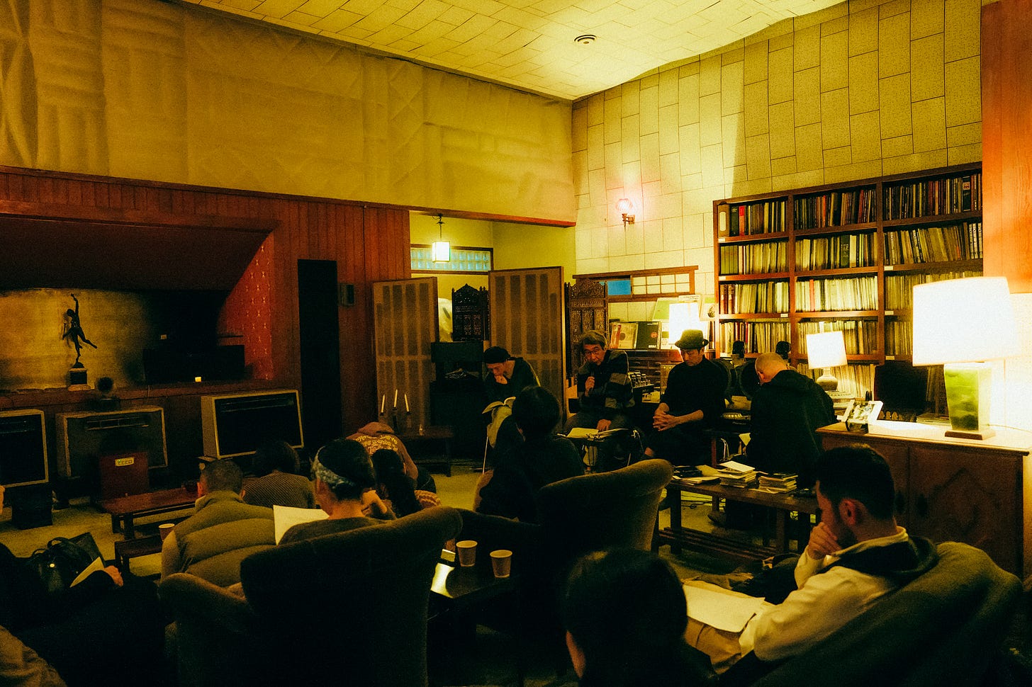 晋哉氏は、かつてある小さなレコード店で体験した瞬間についてこう振り返る。「その場にいる人たちの耳が、全部同じ方向を捉え始めた瞬間があったんです。茶室にいるような静けさのなかで、聴覚が一点に集まってくる。自分と他者がひとつになるような経験でした」イヤホンで遮断された個室的な音楽体験ではなく、同じ空間で空気を共有し、他者の気配を感じながら音に没入すること。そこで生まれるのは、「集団的な感覚の共鳴」だ。