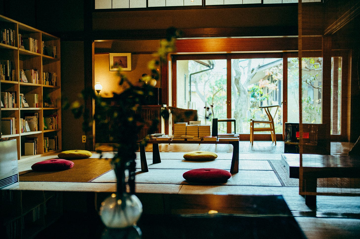 音楽室に隣接し、窓越しに屋敷の庭を見渡すことができる和室に「坐坐奔奔」はオープンした。全生新舎から独立した別プロジェクトでありながら、本というメディアを通して、野口晴哉の思想を指し示す「結び目」を体感する場として構想されている