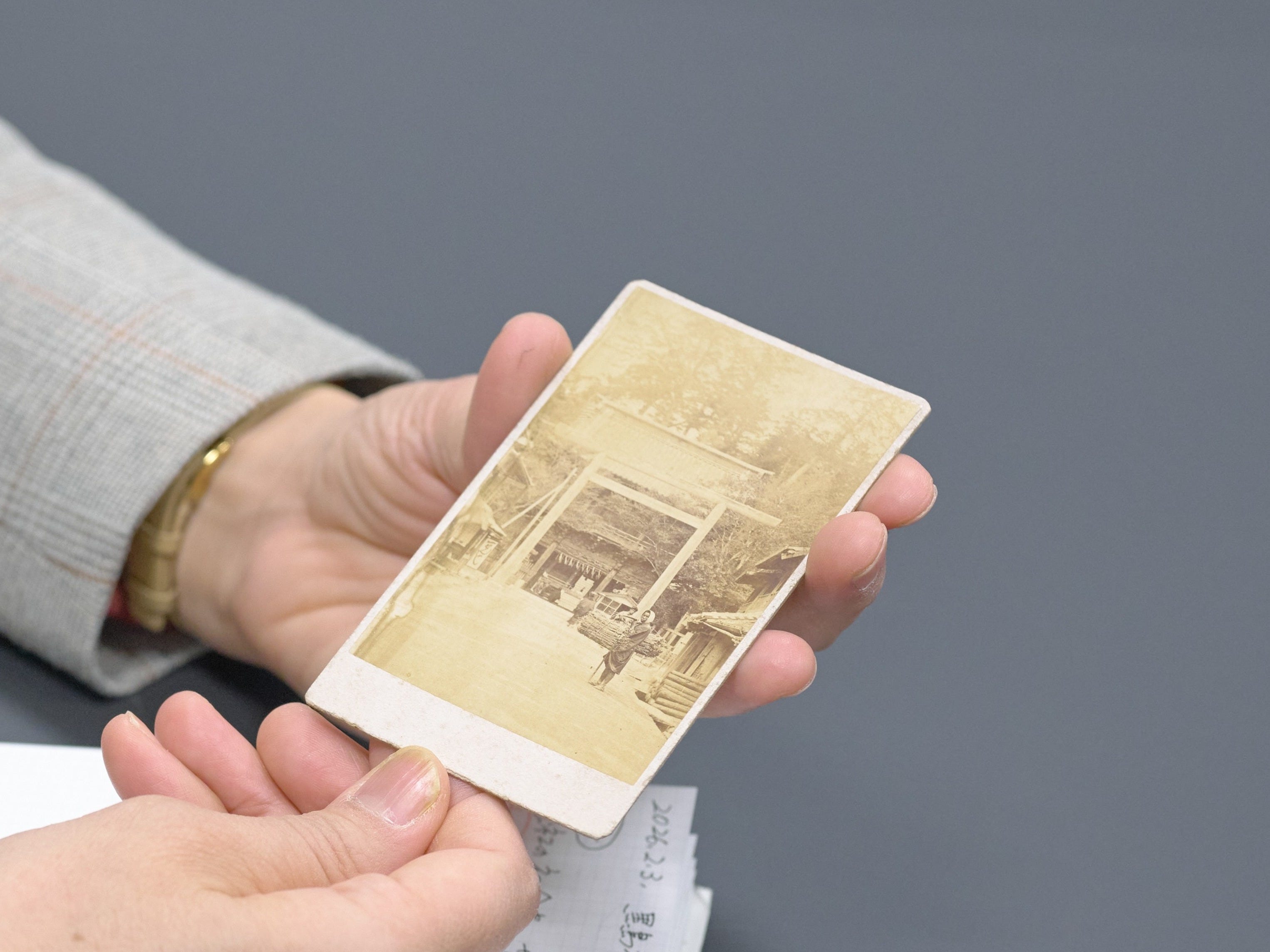 古書店で偶然出会ったことをきっかけに、湯澤氏が自宅で大切に保管している、静岡浅間神社前(現静岡市葵区)の一膳飯屋の古写真。明治・大正期に撮影されたとされ、左端の建物の看板には「めしや」の文字が見える