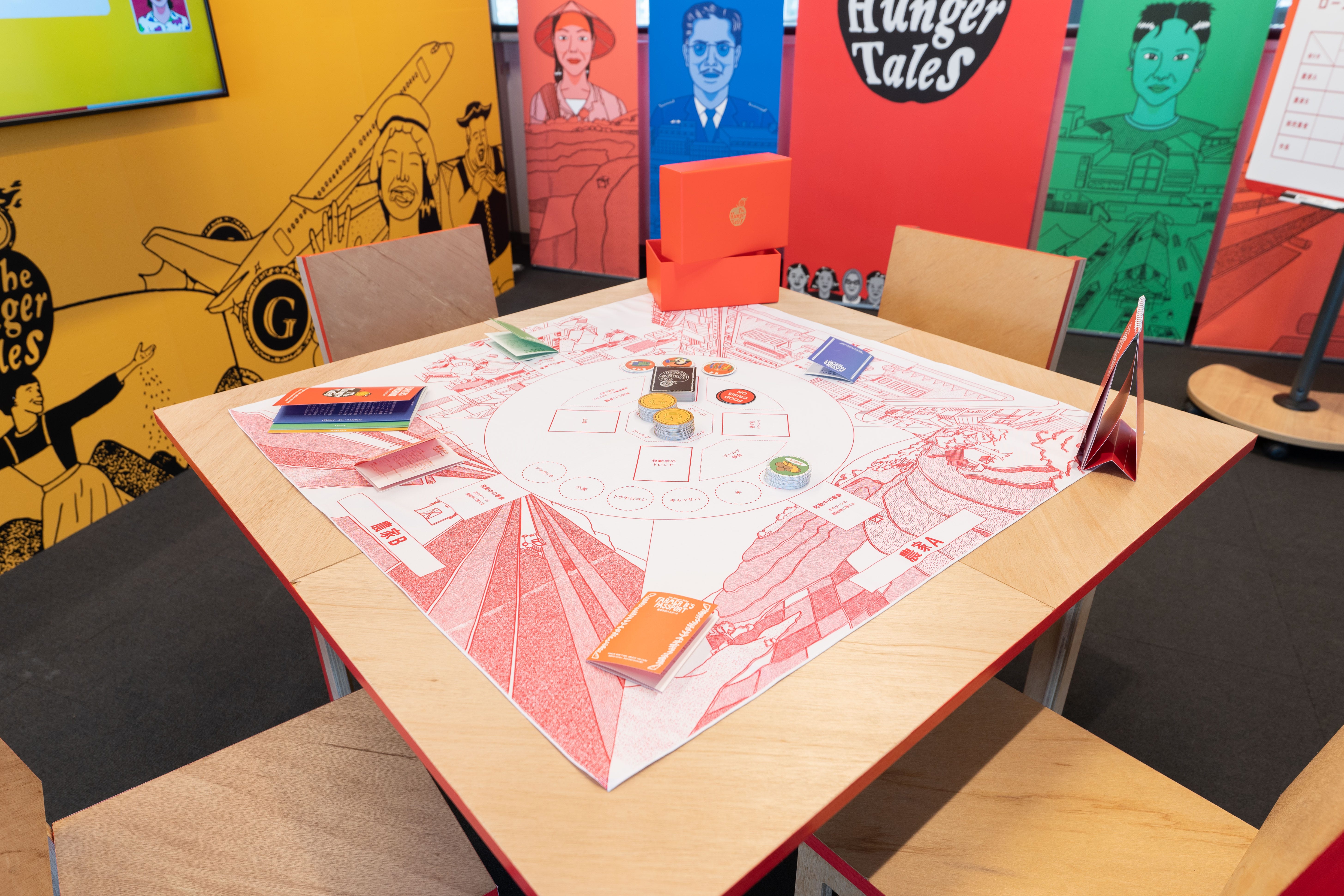 農業政策の複雑な利害・緊張関係を体感できるボードゲーム「The Hunger Tales」は、今回の展示に合わせてプレイブックやカードをすべて日本語に翻訳し、誰でも参加できるようになった