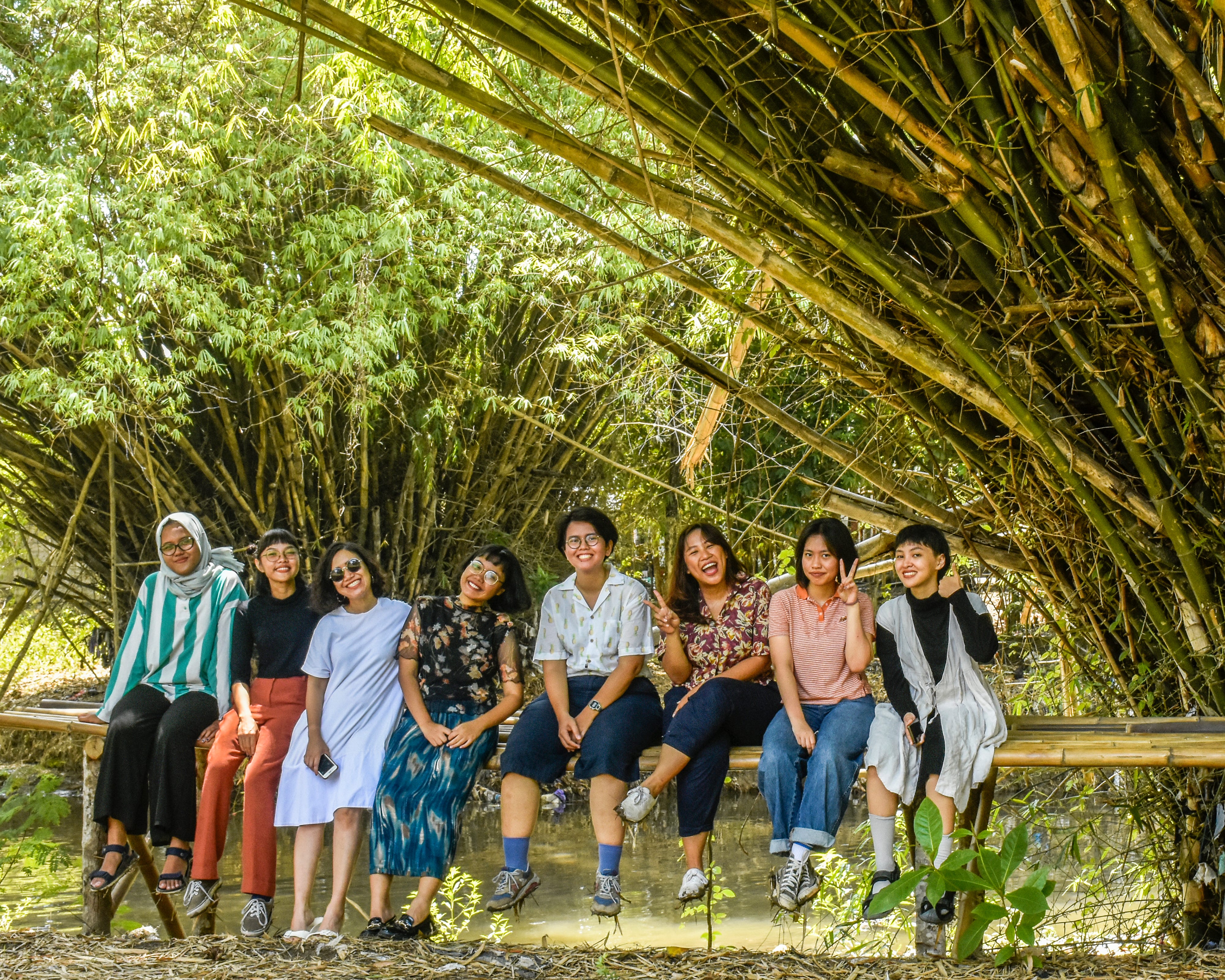 バクダパン・フード・スタディ・グループのメンバー。左から、ガタリ・スーリヤ・クスマ、シルバー・ウィカ・エスティ、ヌルビスタ・エリア、エリエスタ・ハンディティヤ、ハイルンニサ、スワスティアストゥ・モニカ、メイヴィ・アンドリアーニ・ララサティ、プトゥリ・シルフィーナ(敬称略) Courtesy of Bakudapan Food Study Group